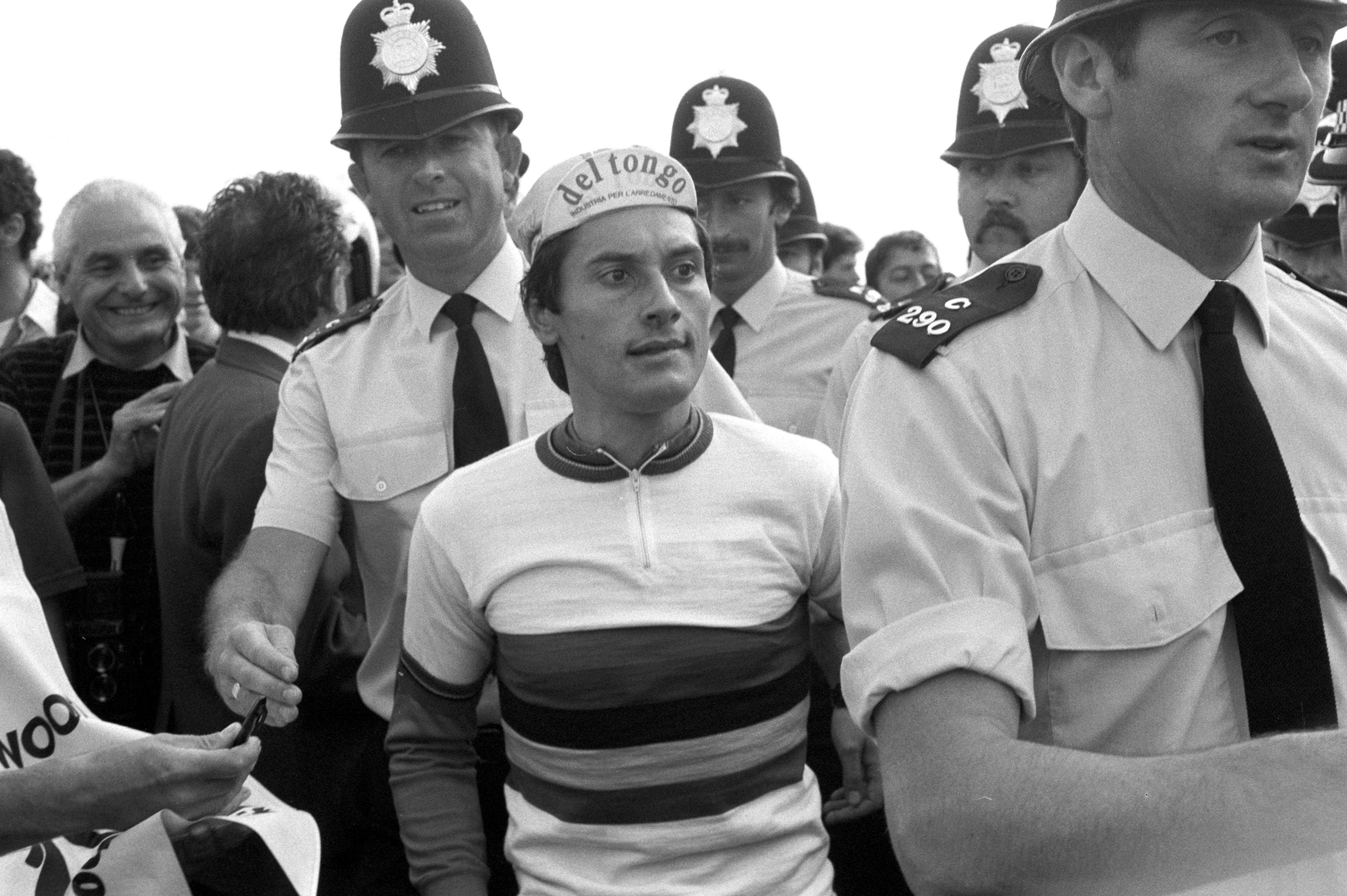 Ride up into the hills behind Goodwood, pedal past the racecourse, and scan the side of the road with care. Look closely and you'll spot a small plaque by the side of the road. It marks the finish line of the 1982 UCI World Road Race Championships. This is the spot where Giuseppe Saronni's fearsome finishing kick, dubbed 'la fucilata di Goodwood' – the gunshot of Goodwood – hit its target.