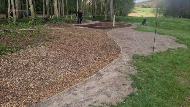 The estate has had a few major water pipe bursts on their pipeline, which goes across the 18th fairway and rough. These have been repaired and have now been turfed by the team. Also, we have now completed the 1st walk off project, which was created after the large tree came down in that area. A wooden edge has been added for a woodchip boarder and turf laid where the old tree stump was. These areas will be GUR for the next few weeks.
