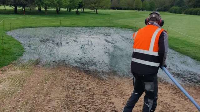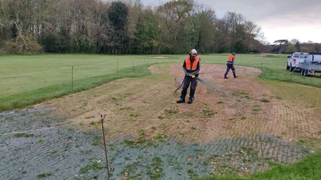 This month we have been hydro seeding the old 4th fairway bunkers to help give them a boost. We put seed and fertiliser into a paste which helps keep the seed damp for better germination.