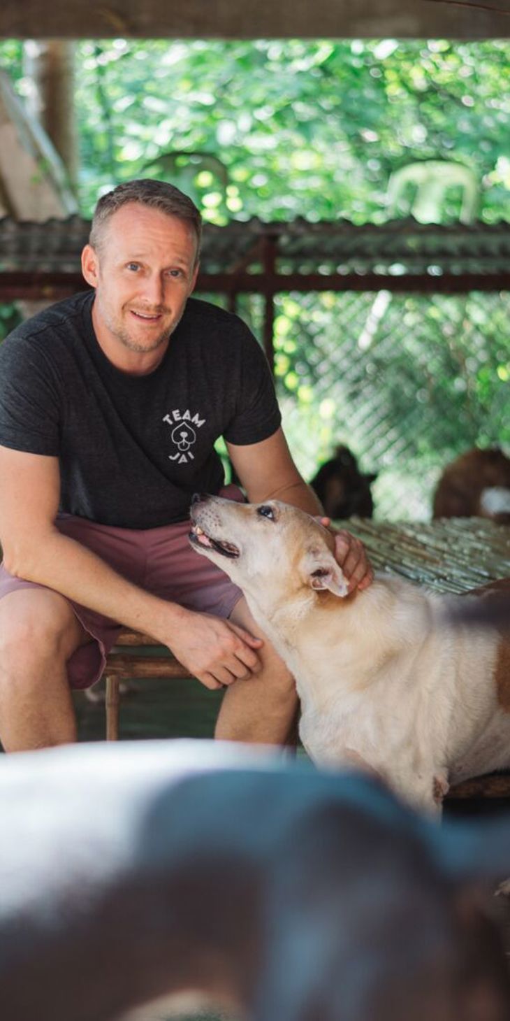 Easy boy! The charismatic Farnham Flyer loved to celebrate every win with a pint of beer. His Boxer dog, Grogger, did too and had a tendancy to steal sips straight from the glass.