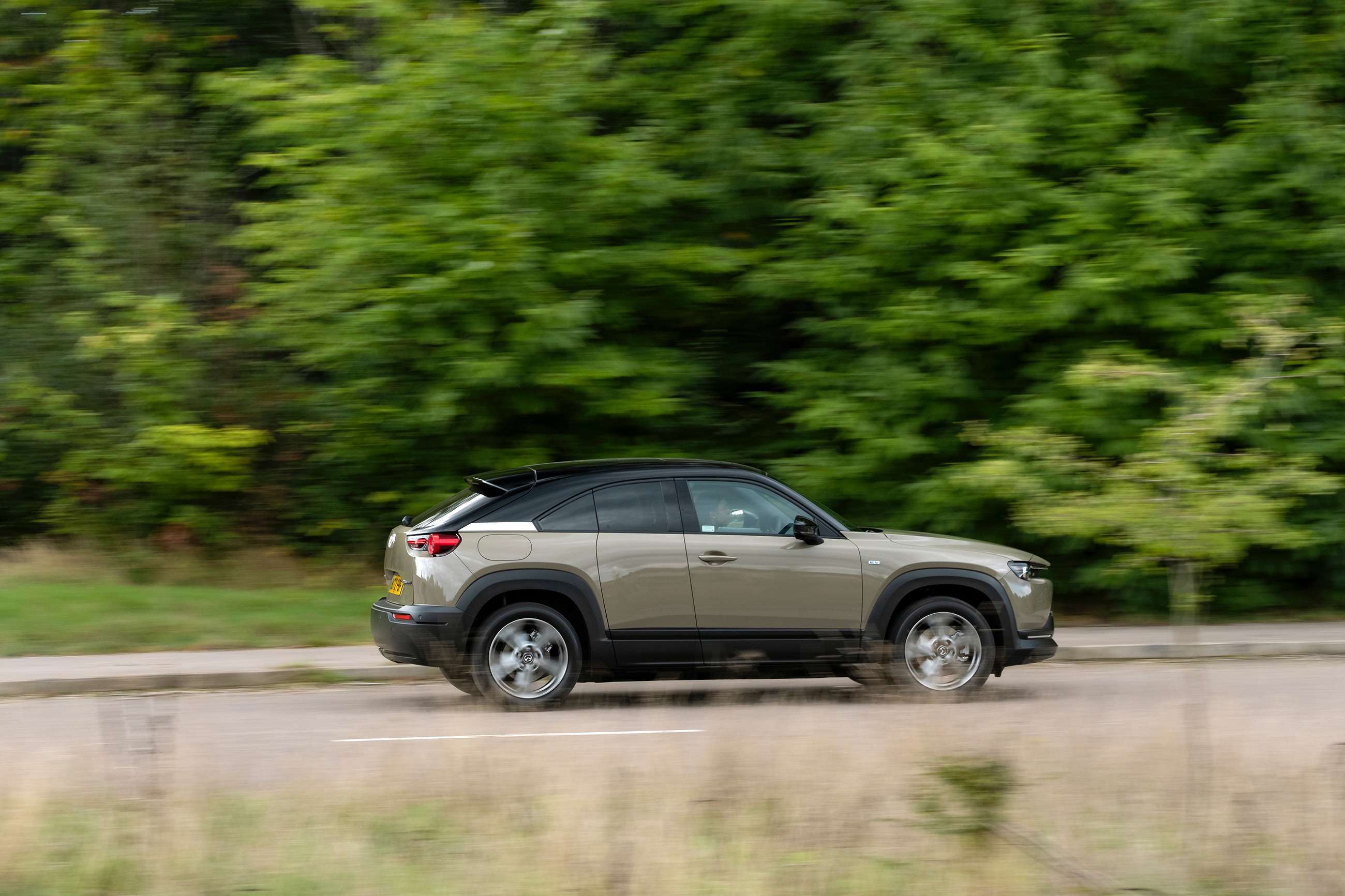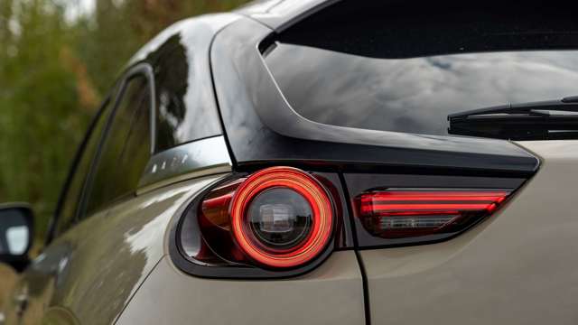 The good thing is that because the MX-30 looks so compact, that anger up front immediately becomes cute, like seeing a toddler ball up its fists. The side profile tries to hide the rear door – more on that in a second – and the back’s simplicity is refreshing. There’s very little in the way of harsh metal crimps or feature lines to be found on the MX-30.