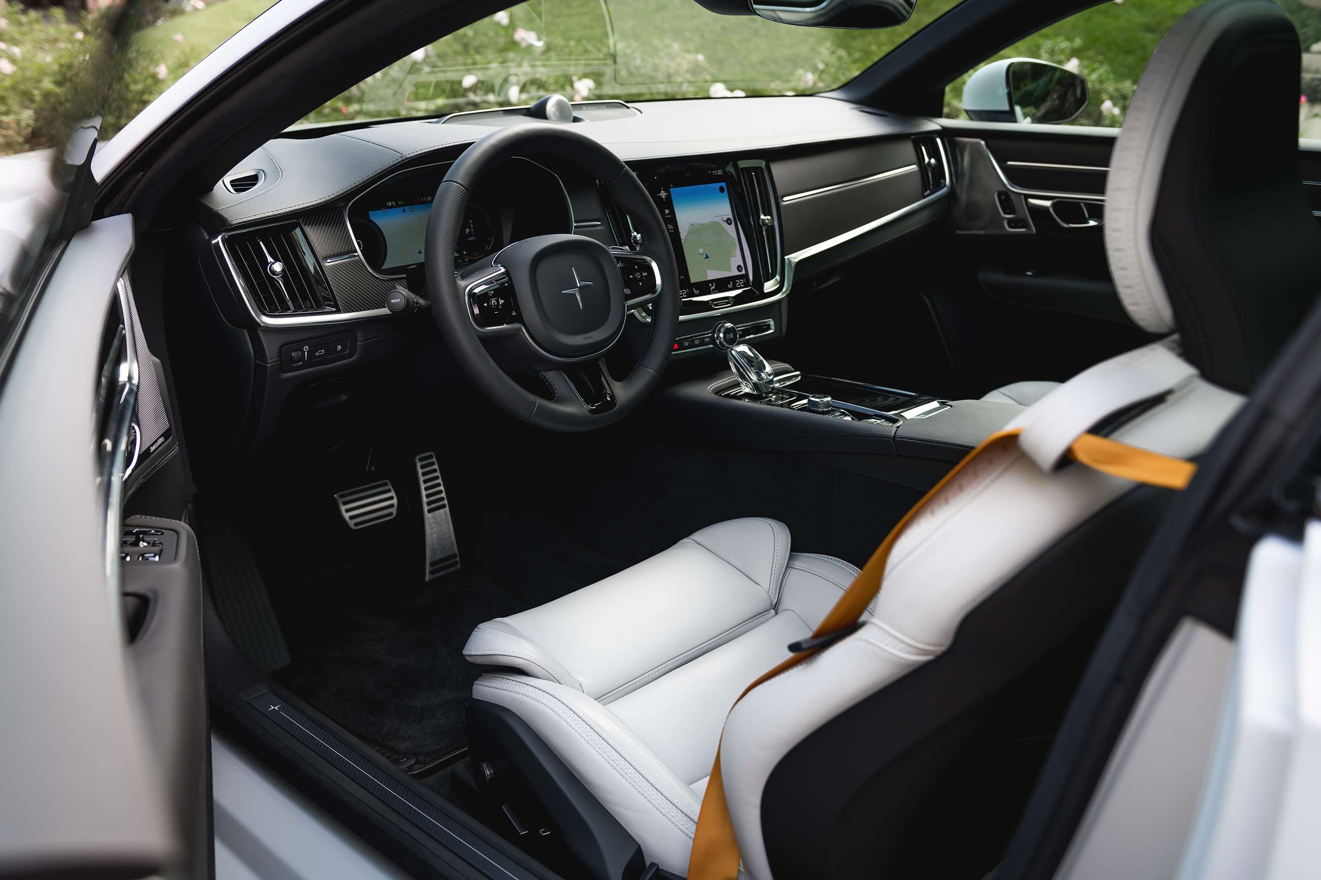In terms of onboard technology, the Polestar 1 is a Volvo: on the driver interface you have the brand’s typical touchscreen with options for Spotify, sat-nav, radio, USB, temperature and the usual, and same knobs, starter switch and steering wheel.