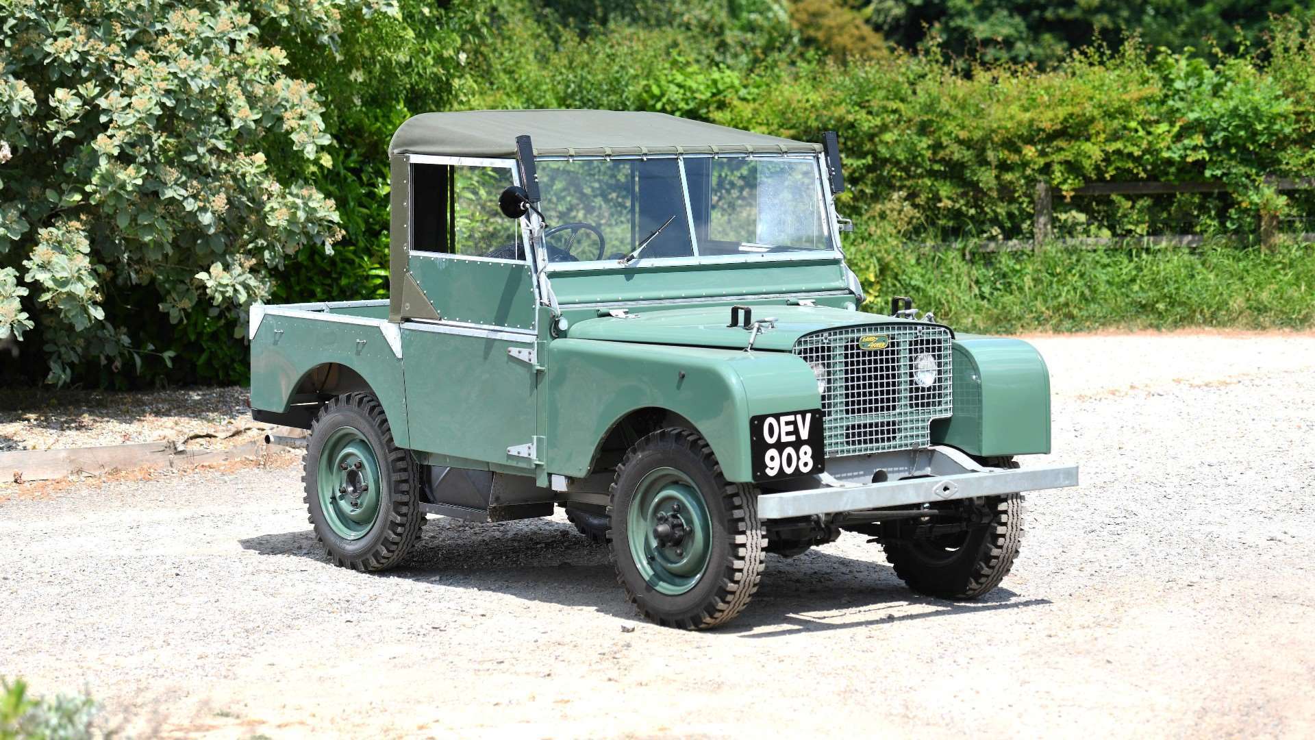 The second production Land Rover has a guide price of up to £150,000 but the 2,269th Land Rover ever made could be yours for half that. This is the light green car you see here, immaculate after a professional restoration in 2019 and little used since then. It’s a lights-behind-grille early model with original chassis, engine and Essex registration, and with a three-seater hood.