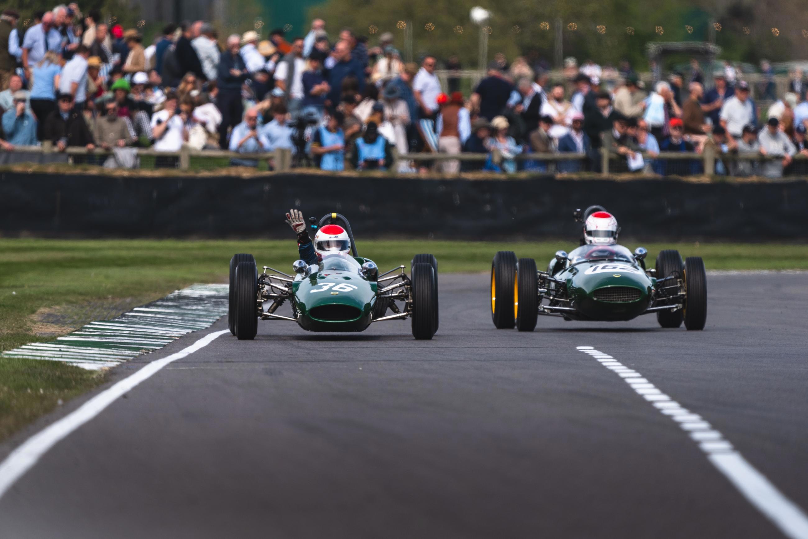 Competition was as fierce as we hoped it would be in the Salvadori Cup, which closed out Members’ Meeting with a battle between Roger Wills and Bonamy Grimes for victory. Their respective Lotus-Climax 15s were the pick of a field of late 1950s sportscars, as they cruised away from a midfield enraptured in duels of its own – Richard Wilson in particular gaining places up to sixth in his own Climax 15. Grimes continued to set fastest laps in his pursuit of Wills, who was bogged down by traffic with minutes to go. When his opening came, Grimes took the only chance needed for the win, lapped cars playing to his advantage as Wills failed to find a clear path to mount a reply. The top three was rounded out by James Thorpe, who comfortably held the place he qualified in.
