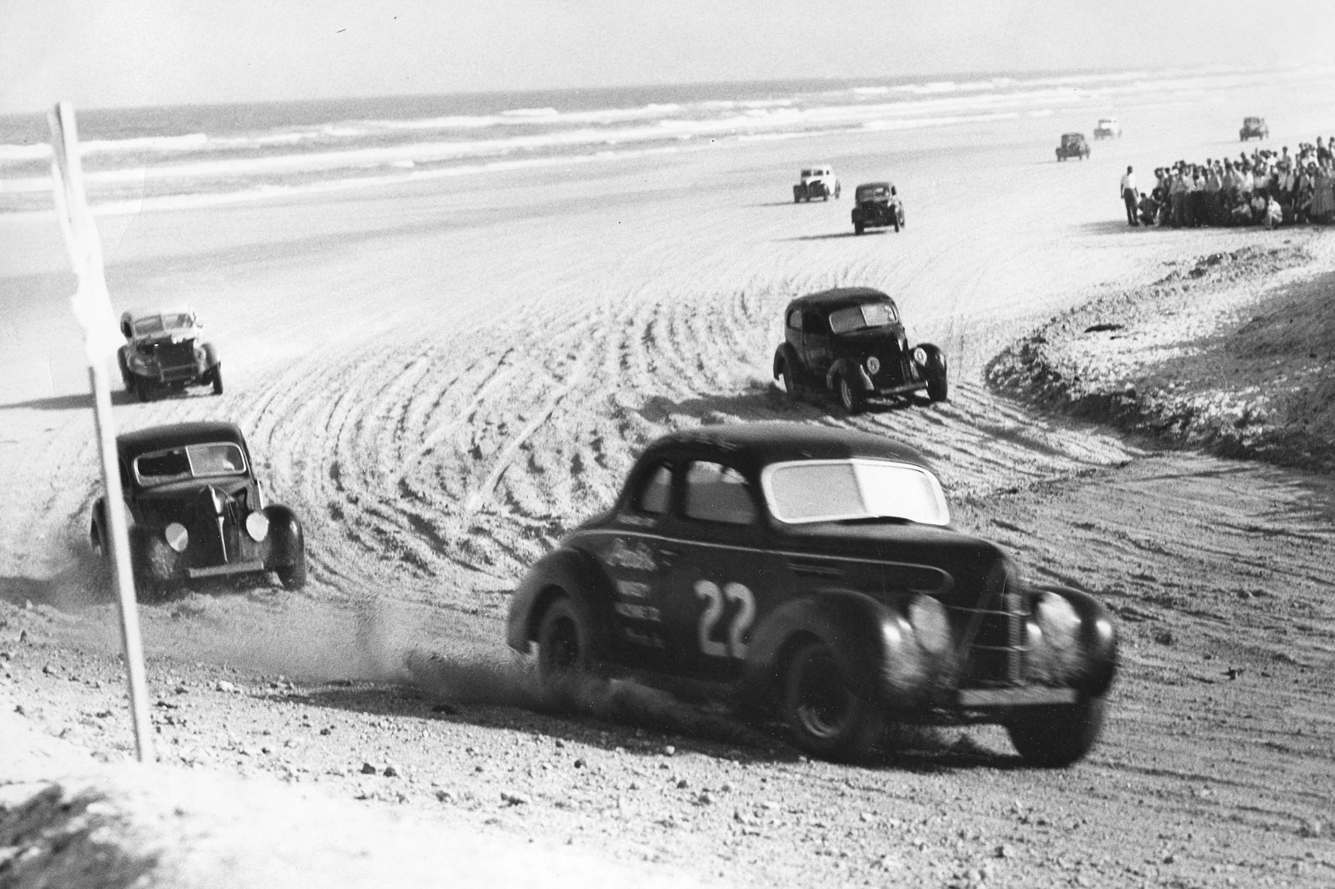 Bill France had caught the racing bug as a kid during 1920s’ America’s brief fancy for steeply banked board tracks. When time and finances allowed he competed on dirt ovals and – after withdrawing his $75 savings to begin a new life in the South – on Daytona’s sand of Land Speed Record renown.
